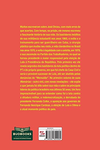 Muitos escreveram sobre José Dirceu, com mais erros do que acertos. Com tempo, na prisão, ele mesmo escreveu a fascinante história de sua vida. Os bastidores inéditos de sua militância estudantil nos anos 1960, o exílio e o treinamento para ser guerrilheiro em Cuba, a cirurgia plástica que mudou seu rosto, a vida clandestina no Brasil nos anos 1970, a volta à legalidade com a anistia, em 1979, e sua ascensão no Partido dos Trabalhadores, onde se tornou presidente e maior responsável pela eleição de Lula à presidência da República. Pela primeira vez ele revela segredos dos bastidores da luta política dentro do PT e do próprio governo, onde foi chefe da Casa Civil e provável sucessor de Lula, até ser abatido pelas denúncias do chamado “Mensalão”. No primeiro volume de suas “Memórias” – outro virá, com novas revelações – ele expõe o que jamais foi dito sobre sua vida e sobre os principais líderes da política brasileira nos últimos 50 anos. Um livro imprescindível para se entender como foi a luta contra a ditadura miliar, a redemocratização, a derrubada do presidente Fernando Collor, a oposição aos governos de Fernando Henrique Cardoso, a eleição de Lula e Dilma e o atual momento político do país.