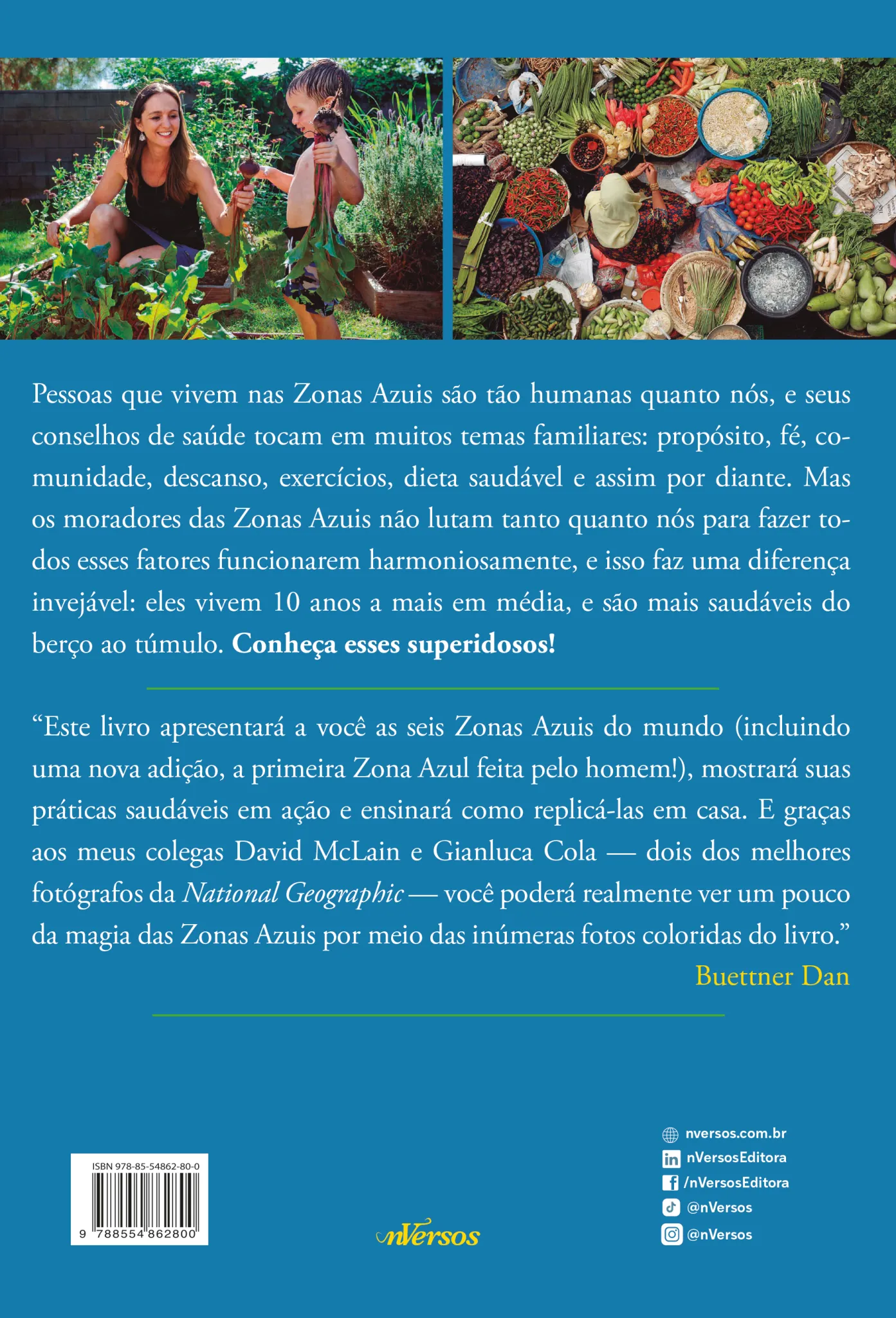 Em Zonas Azuis: o Segredo dos Lugares mais Saudáveis do Planeta, Dan Buettner, criador das populares Zonas Azuis (Blue Zones) da National Geographic e agora documentário da Netflix, apresenta um guia ilustrado e informativo sobre os lugares do mundo onde as pessoas vivem mais e melhor.